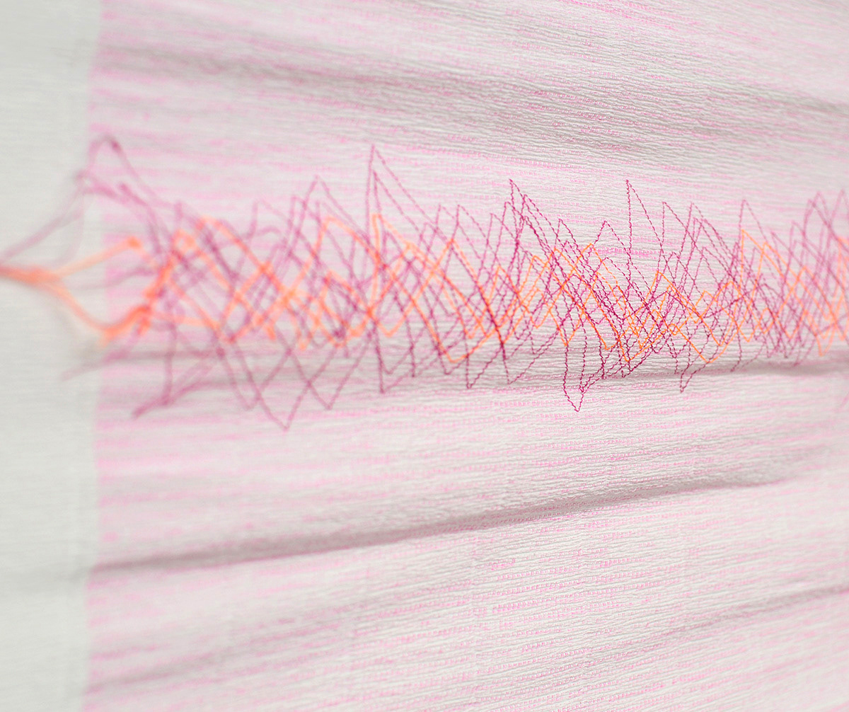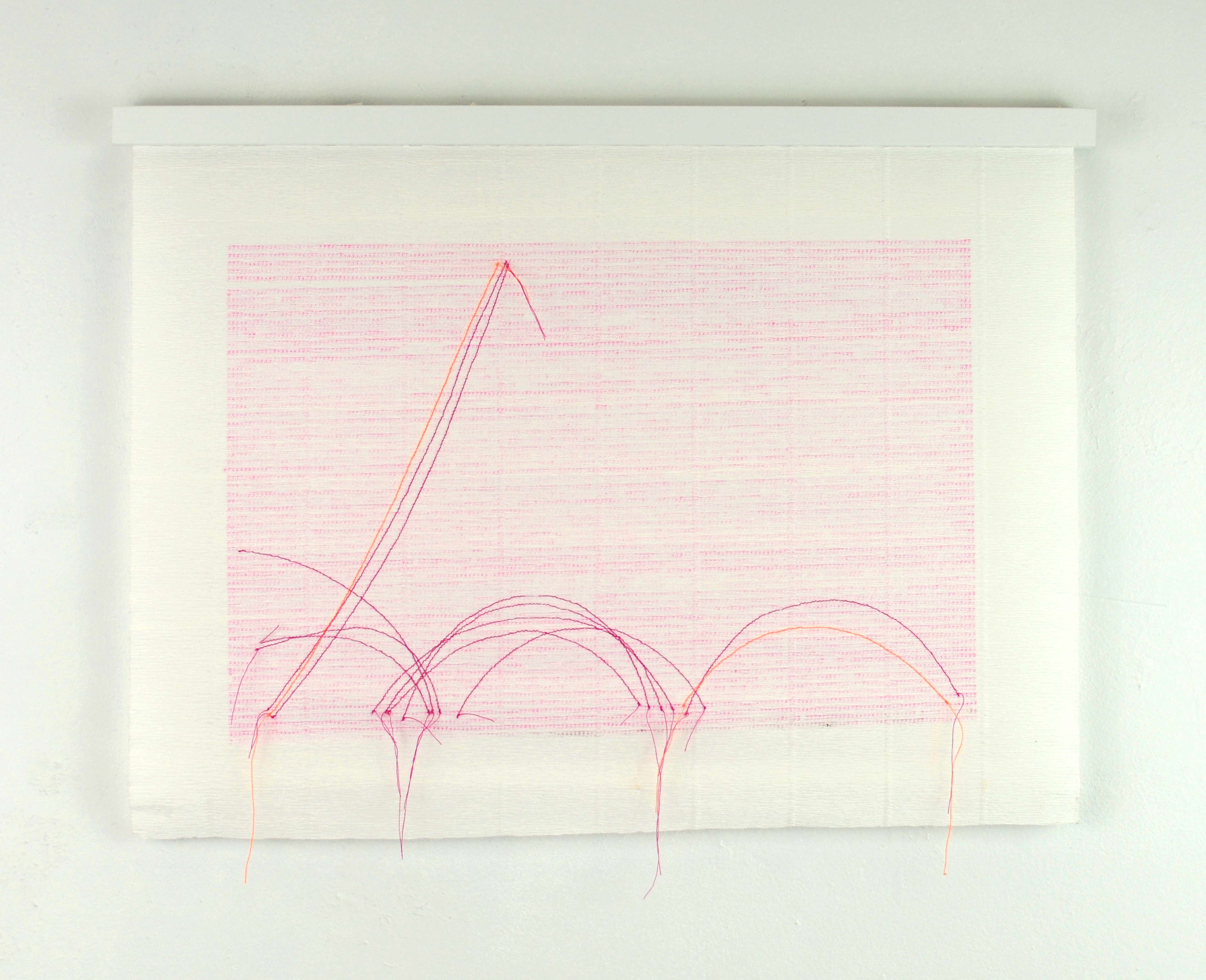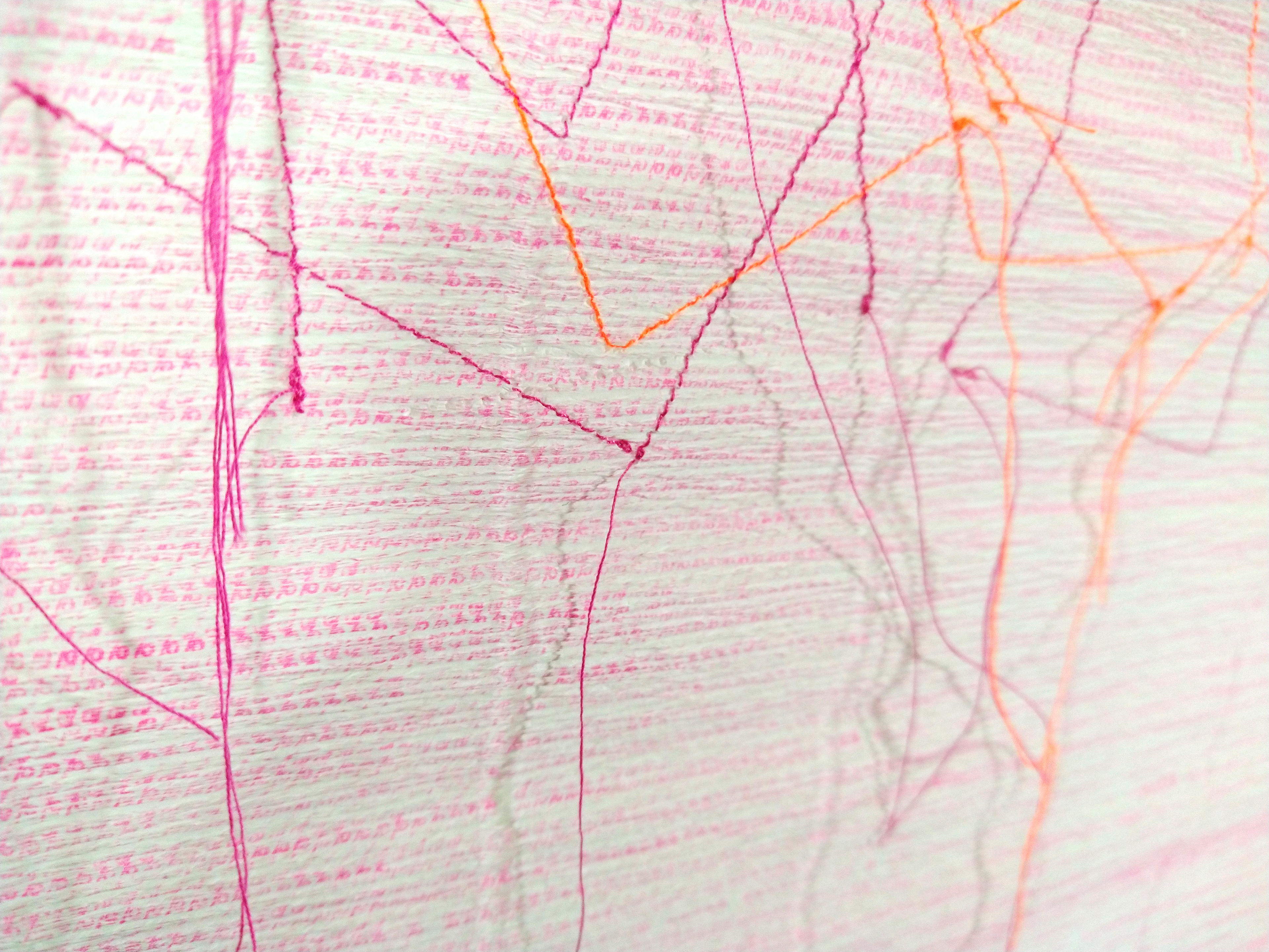 Typewriter ink and thread on Italian crepe paper. 2023-Present (Ongoing Series).