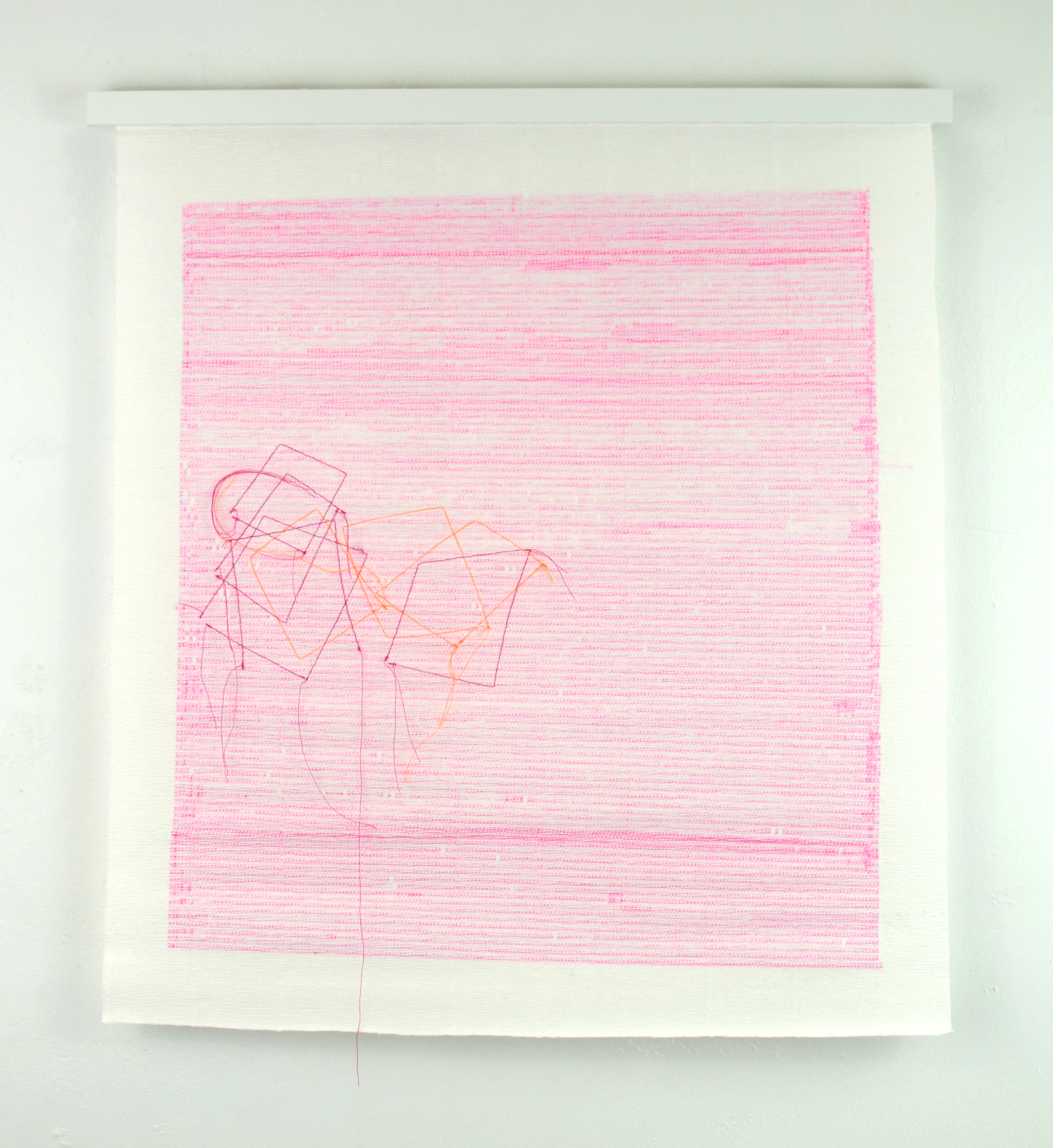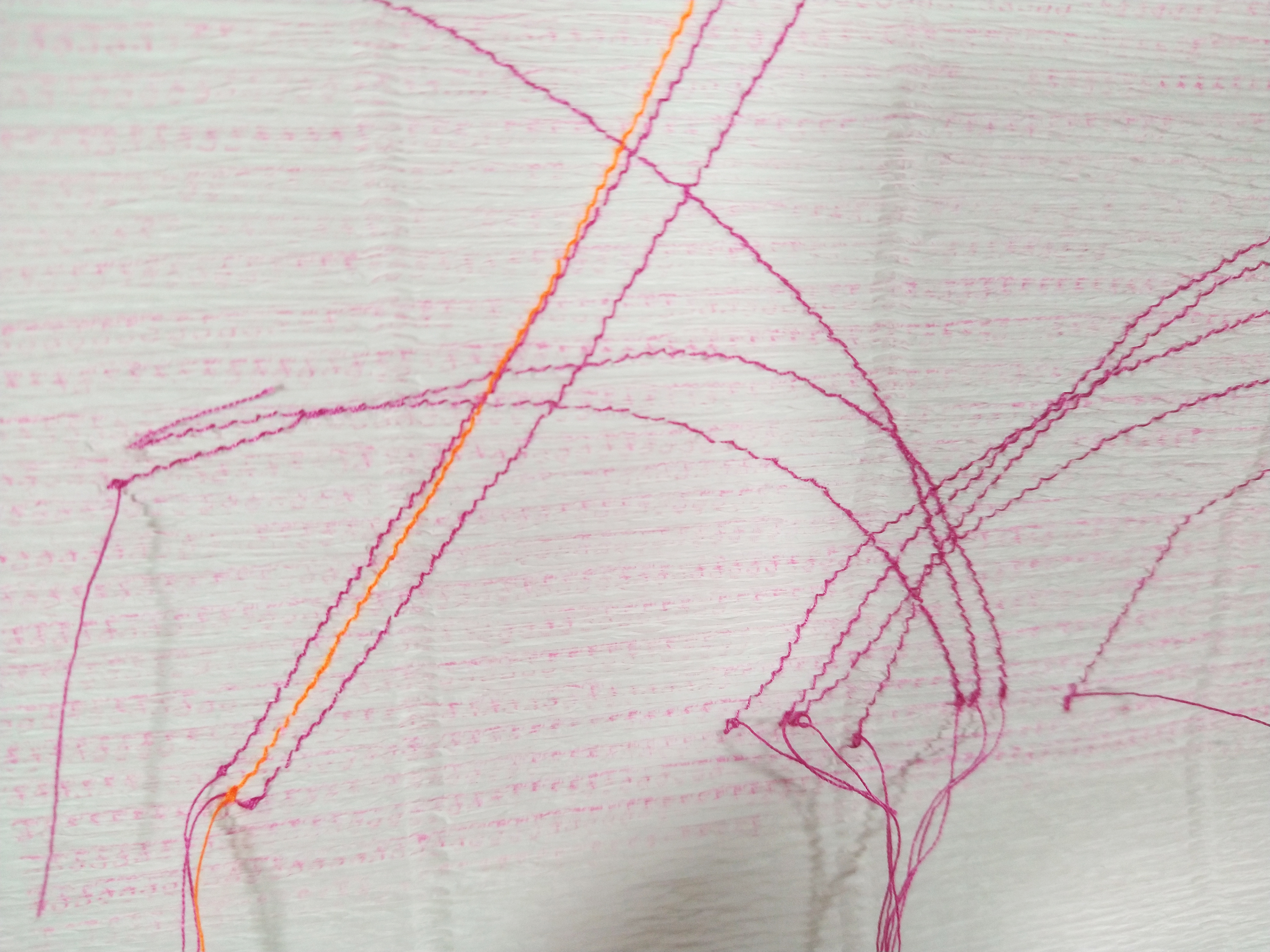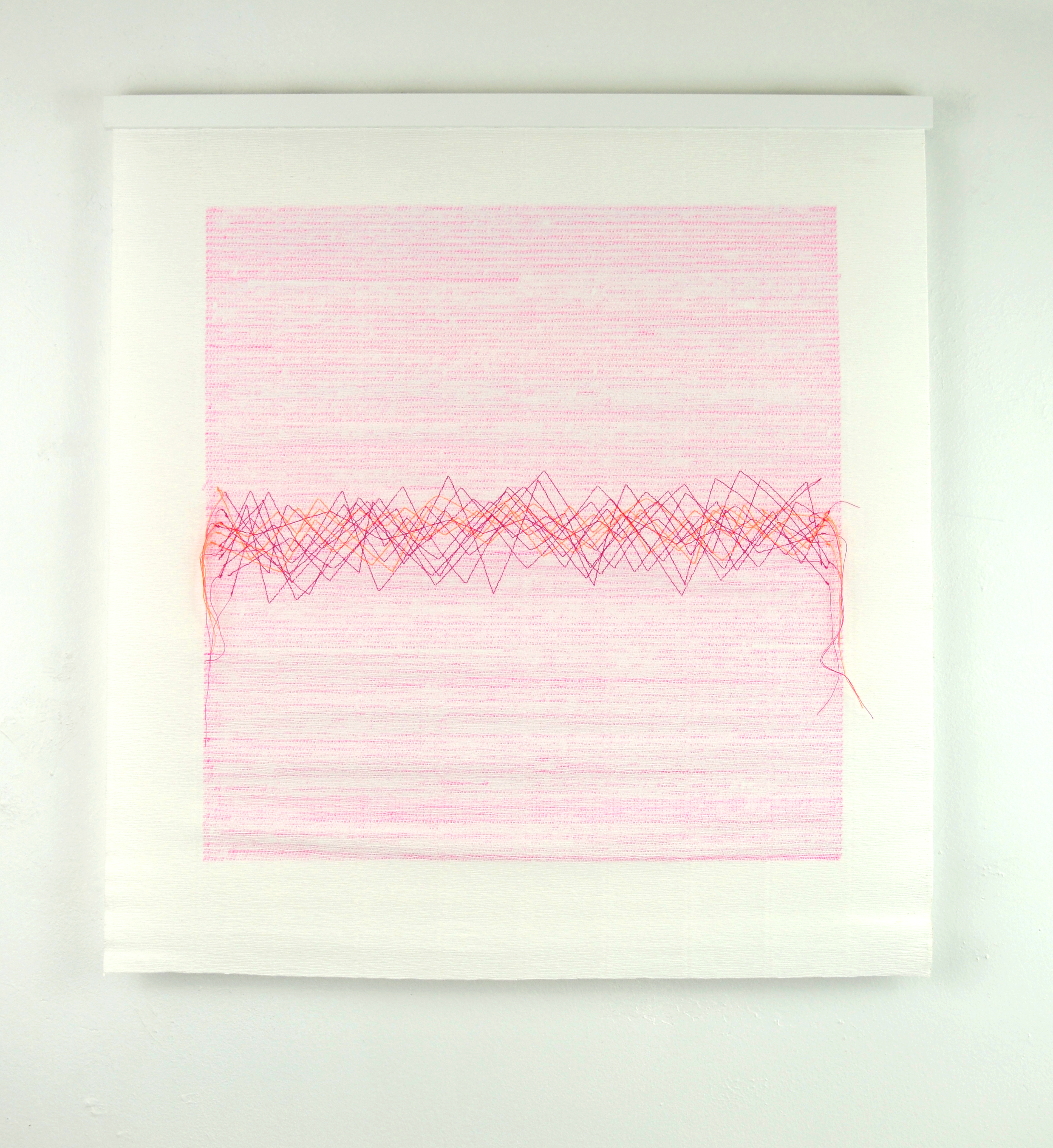 Typewriter ink and thread on Italian crepe paper. 2023-Present (Ongoing Series).