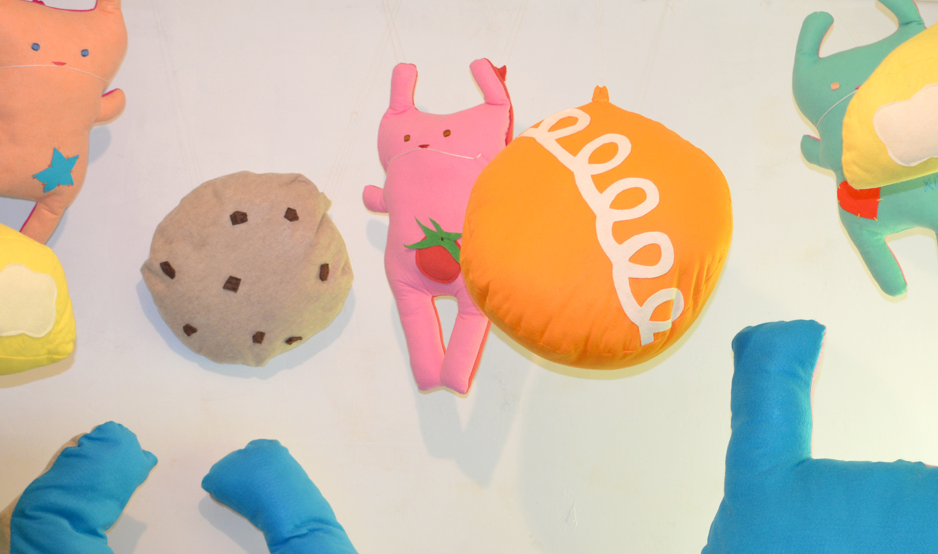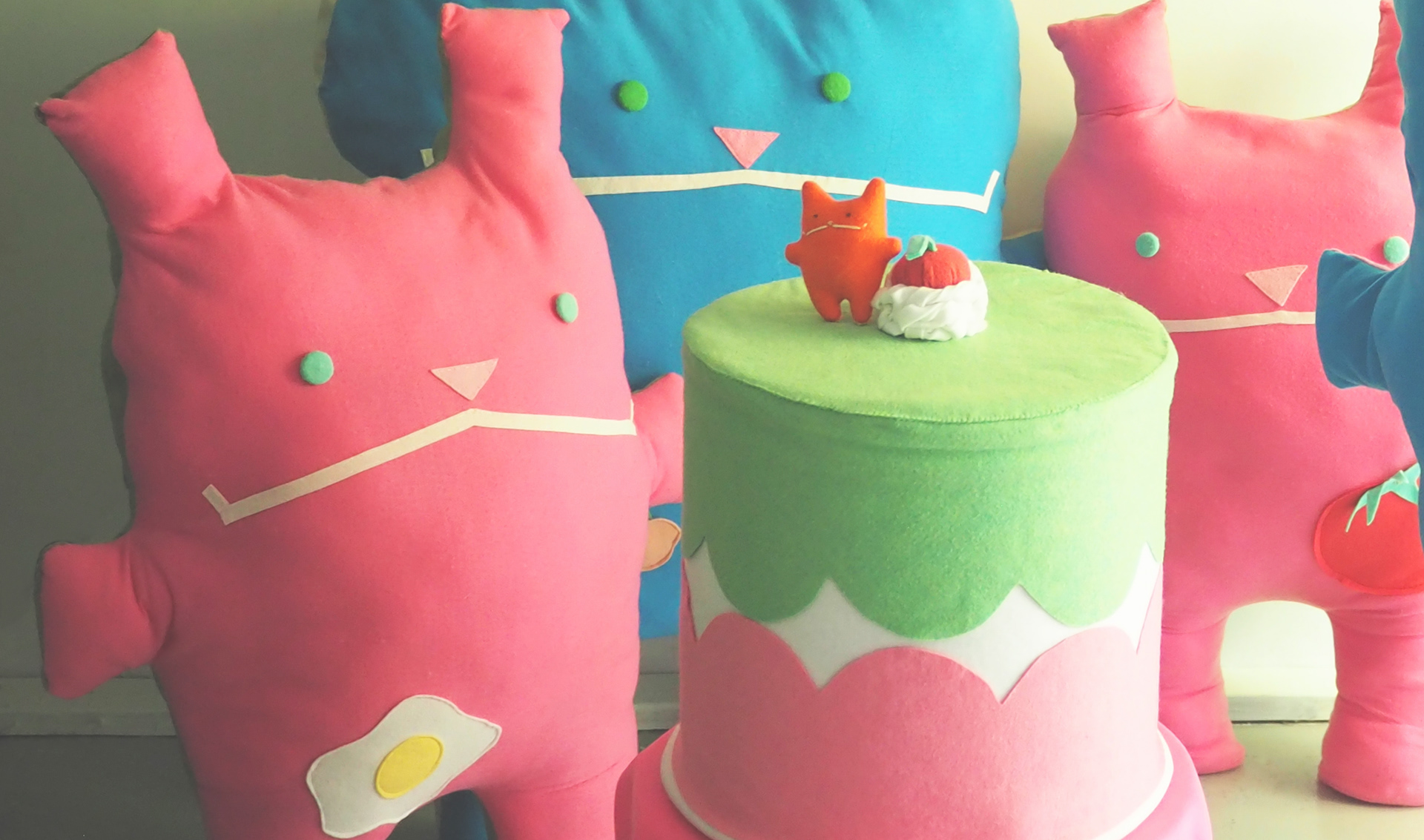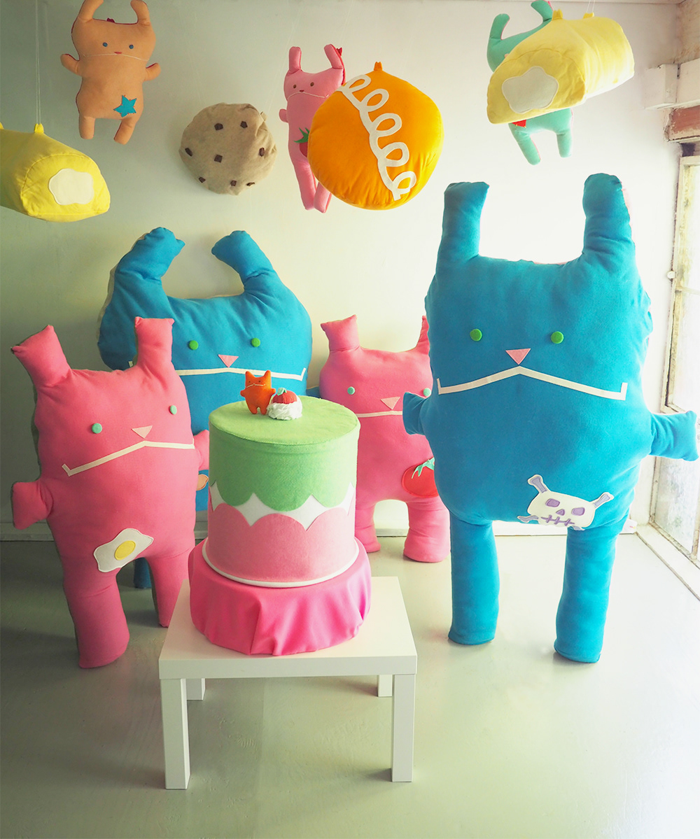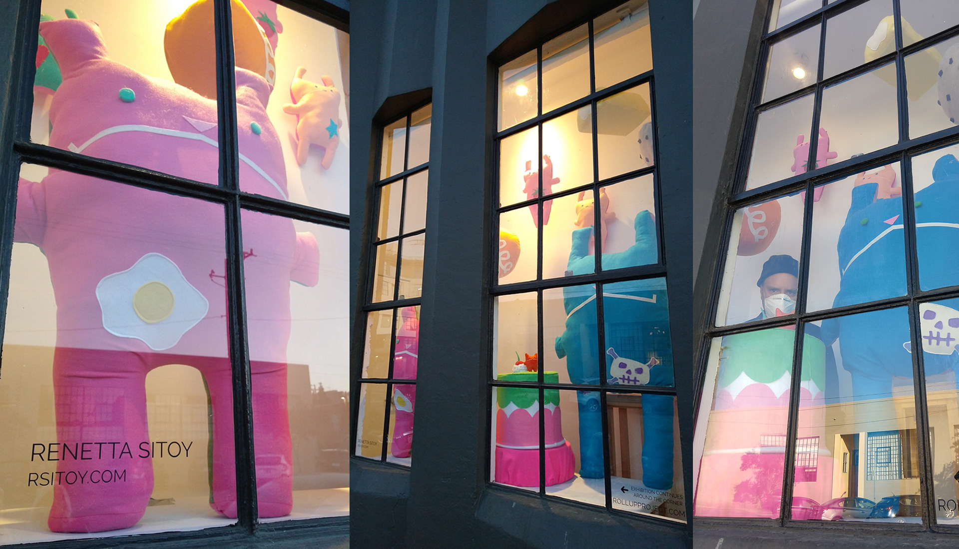 Created during Covid lockdown, The Snack Thief provides a childlike escape from reality. Exhibited at the Roll Up Project in Oakland, CA in 2021. Felt, polyfil and thread, dimensions variable, 2020.